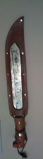 William's machete and its holder - custom made for him. This leather holder had "Costa Rica - Pura Vida" and "Parque En Corcovado" etched on it. Also were macaw, horse, toucan, humming bird and turtle.